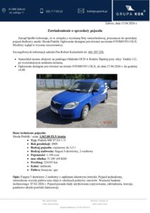 Zawiadomienie o sprzedaży pojazdu Skoda Praktik SZ0355C